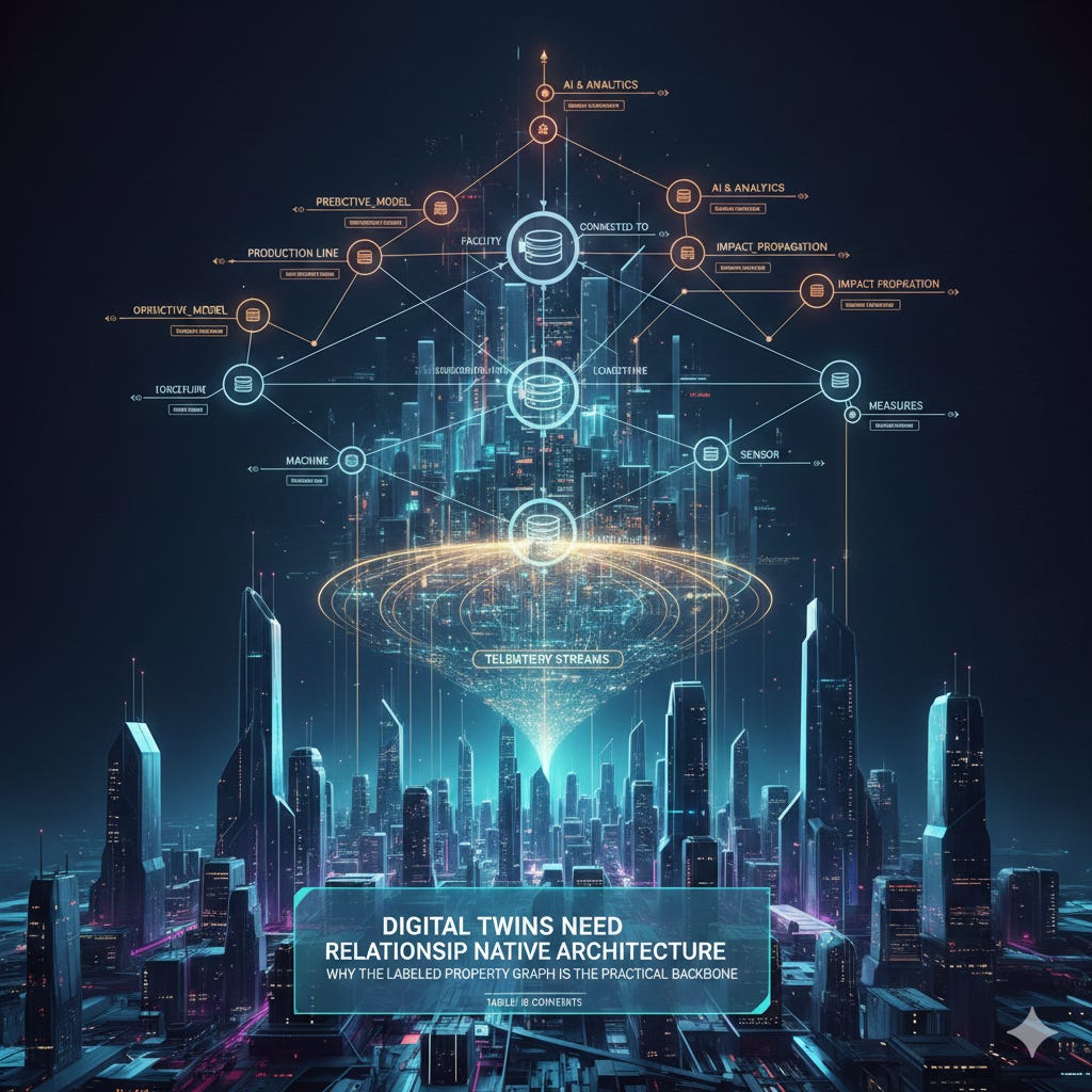 This article addresses the structural foundation required for production grade Digital Twins. It argues that the Labelled Property Graph model provides the most practical and scalable backbone for modelling complex physical systems in an operational context. The discussion is technical and aimed at architects, engineering leads and enterprise data strategists.