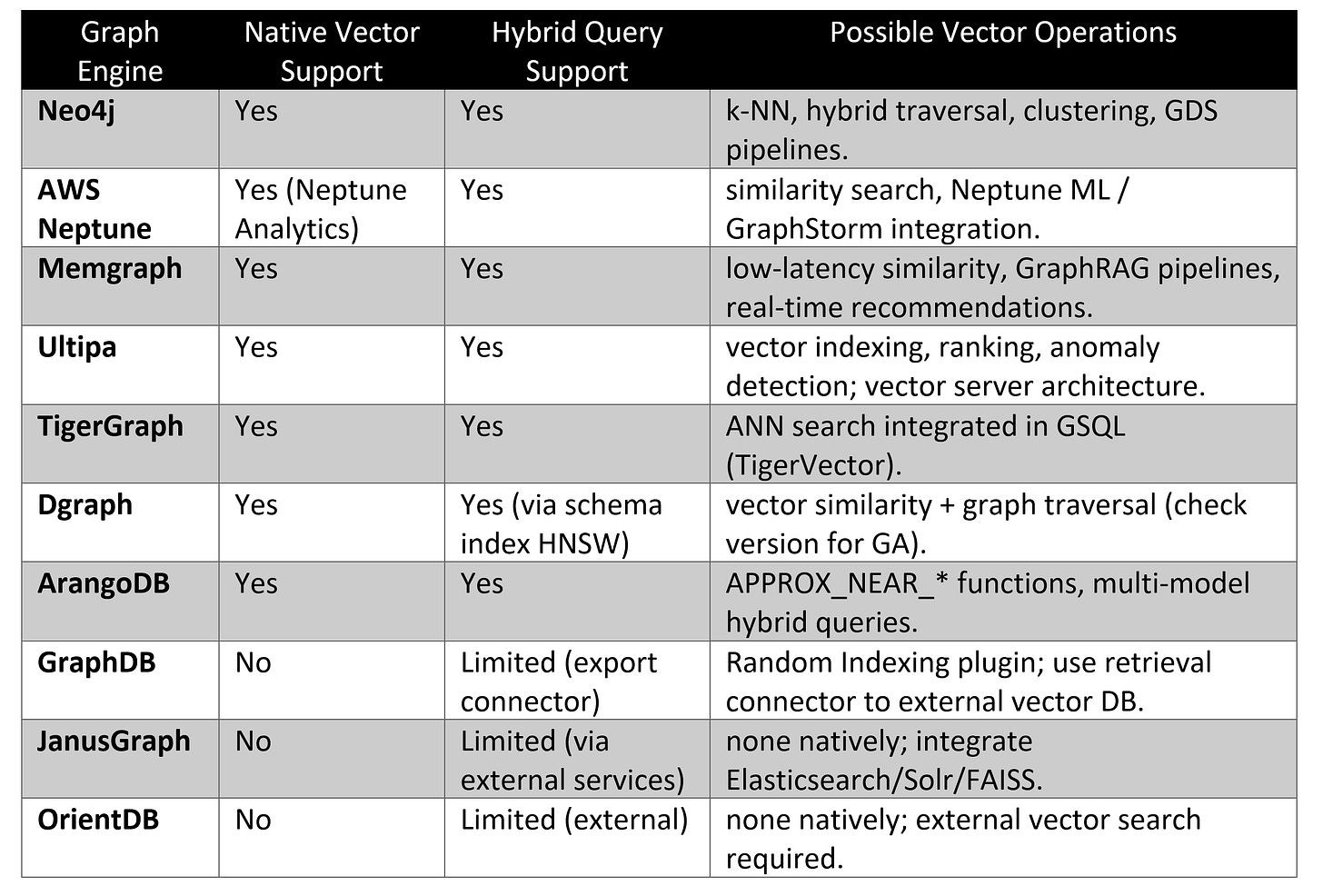 Vector Embeddings in Graph Databases: Overview and Engine Capabilities